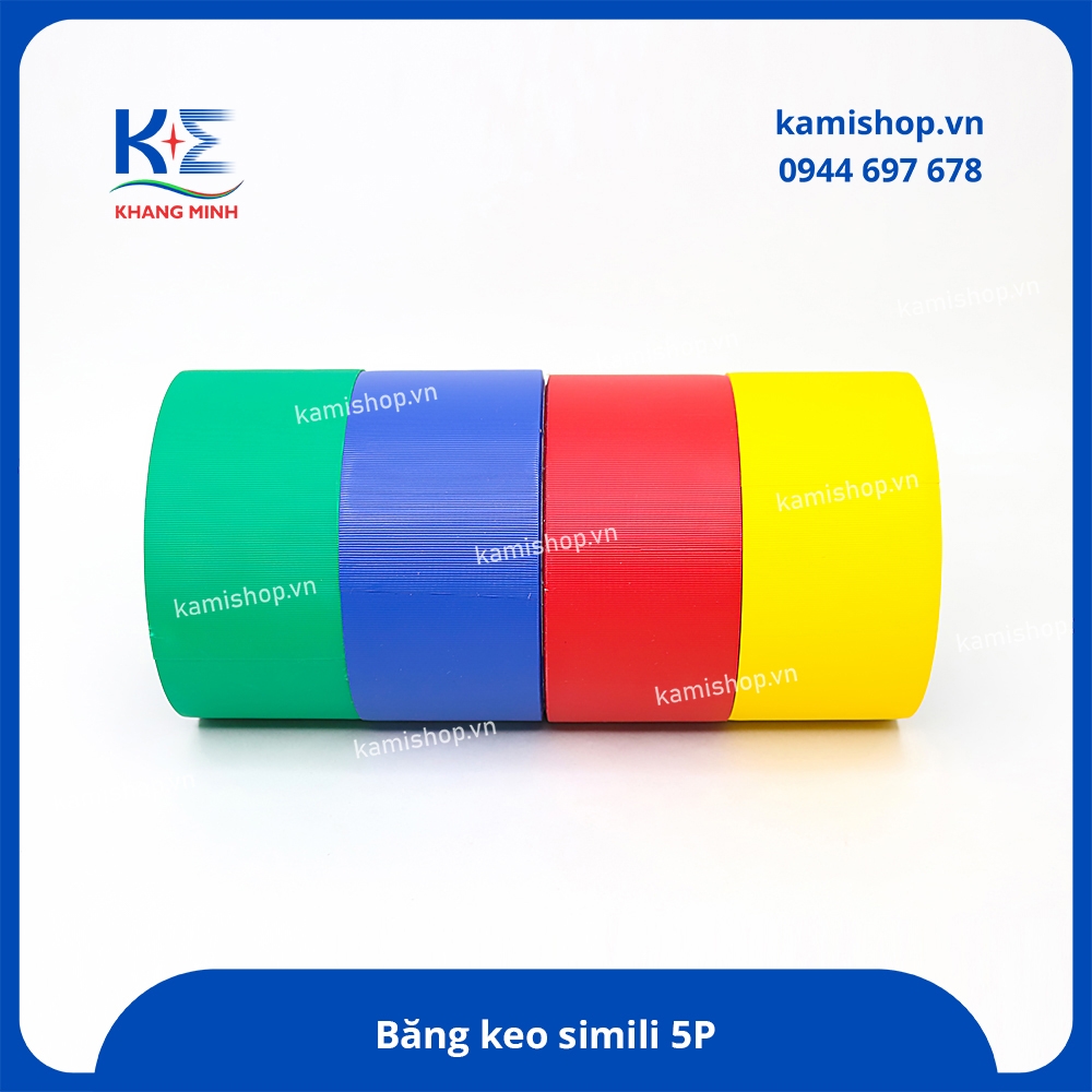 - Băng keo simili 5P là loại băng keo simili dùng để đóng tài liệu thành cuốn, đóng gáy sách, tập hồ sơ phổ biến trong văn phòng.